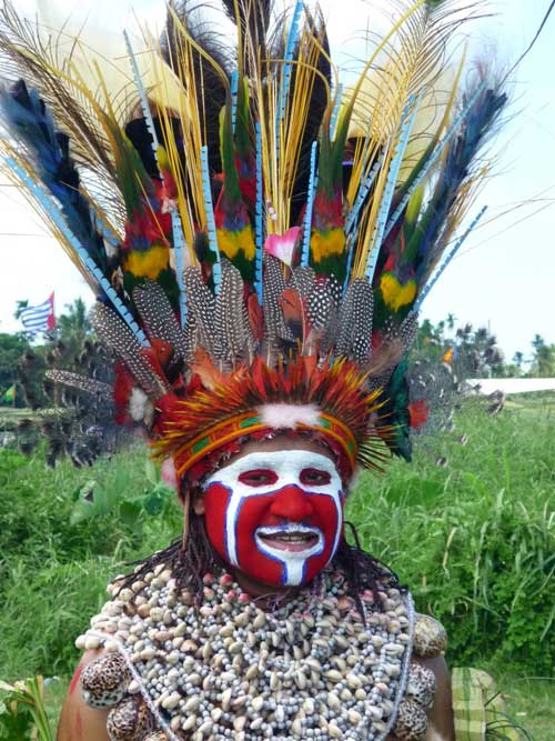 In Highlight im 3. Jahr: Kulturfest! Kopfschmuck mit Federn von durchschnittlich 40 Paradiesvögeln
