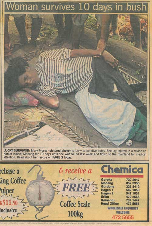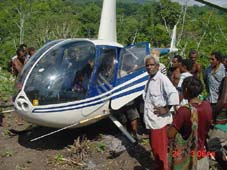 Peter Barter - der Minister - kommt zur Hilfe und fliegt sie mit seinem Helikopter nach Madang in das Krankenhaus