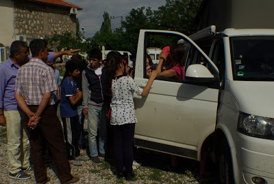 Bei unserer Ankunft in Tatvan geraten wir in einen ziemlich heftigen Hagelschauer bei ungefaehr 10○C! Die anschliessende Suche nach einem Campingplatz bleibt erfolglos, auch nach 60 km Kuestenstrasse. Tourismus scheint hier ein Fremdwort zu sein. Zudem Wiese zwischen Huehnern und grasenden Kuehen. Die Frau beim angrenzenden Bauernhof gibt uns zu verstehen, dass wir bleiben koennen, na gut, ueberredet. Die Kinderschar ist sehr interessiert an unserem Bus und dadurch haben unsere beiden Kinder endlich lange keine Langeweile mehr. Sie bauten zusammen einen Damm am kleinen Bach und angeln.