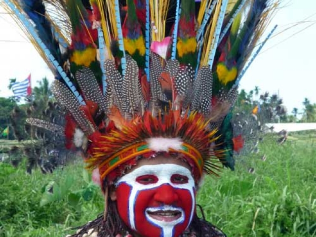 In Highlight im 3. Jahr: Kulturfest! Kopfschmuck mit Federn von durchschnittlich 40 Paradiesvögeln
