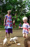 Wir erlagen noch dem Zauber Bagabags, der Nachbarinsel, auf der Mary - unser leider teilweise gelähmtes Kindermädchen - mit ihrer Familie wohnt. Wir durften zwei Nächte in ihrem Haus wohnen und am puren Dorfleben teilnehmen. Filip musste allerdings im „haus boi“ (Jungenhaus) schlafen, was er auch trotz heftigem nächtlichen Gewitter und trotz dem In-den-Busch-pinkeln-gehen-müssen tat.