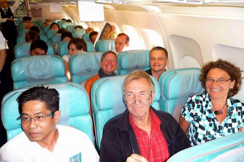 AbgelaufenFlug nach Medan (Nordsumatra), zusammen mit der Enkelin des Missionsarztes Dr.med.Wagner, Frau Annette Günzler und ihrem Mann Gerhard (vorne)