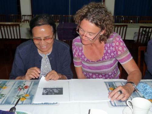 Durchsicht des Fotoalbums von Annette Günzlers Mutter über die Zeit um 1925 im Batakland mit Schwester Bonaria Hutabarat. Die Diakonissen arbeiten zum Teil im Krankenhaus in Balige, das Annettes Großvater mit aufgebaut hatte.