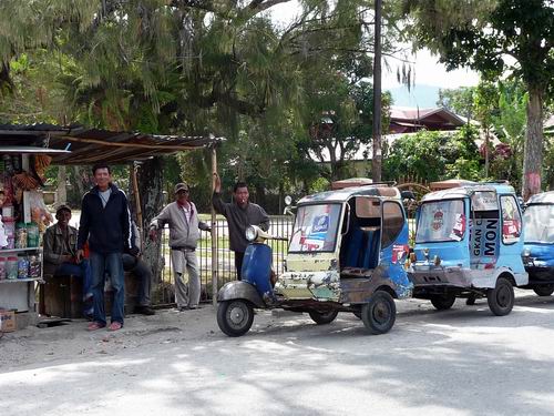 Am Kiosk vor dem Krankenhaus in Balige warten Motorrad-Taxis auf Besucher...