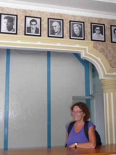 Annette steht unter der Fotogalerie der Deutschen Ärzte. Direkt über ihr prangt das Portrait ihres Großvaters Dr.med. Wilhelm Wagner. Wir wurden durch alle Abteilungen des Krankenhauses geführt und über alle Besonderheiten, Errungenschaften und Leistungen des Krankenhauses informiert. Danke, das war wirklich beeindruckend!