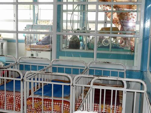 Der Brutkasten des Gebärstation. Es gibt auch deutsche Ärzte im Krankenhaus.