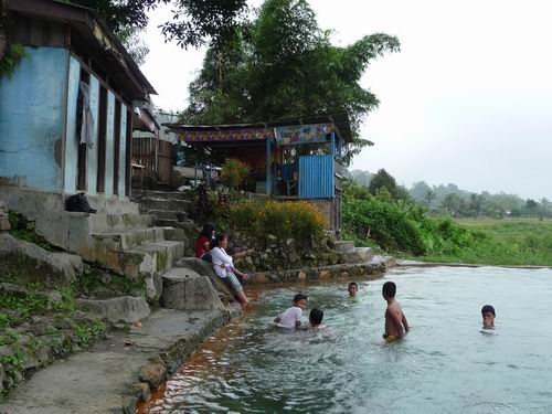 Die Entspannung in den lauwarm prickelnden Soda-Quellen (!!) bei Tarutung, Desa Parbubu, ist perfekt.