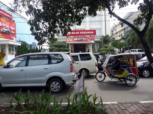 Hans Ebinger fährt uns mit seinem Wagen gekonnt linksseitig durch den indonesischen Verkehr