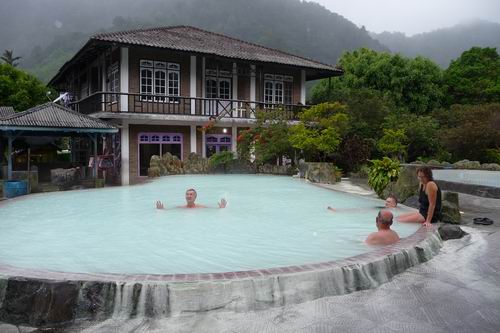 Warme Quellen am Fuße des Vulkans Sibayak entspannen die schmerzenden Glieder vom Flug