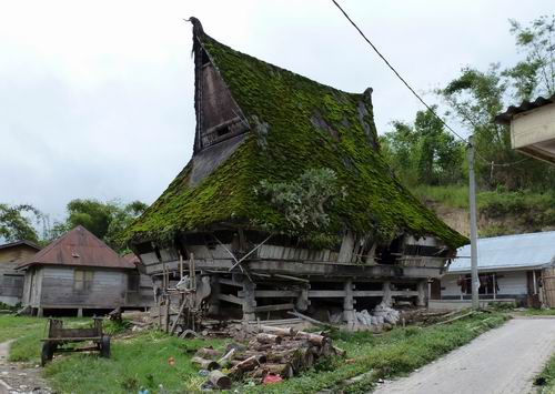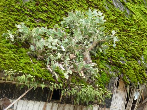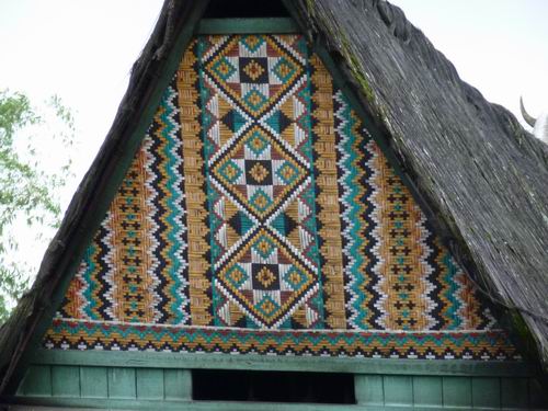 Flechtereien in den Giebeln, Palmfaser als Dachbedeckung