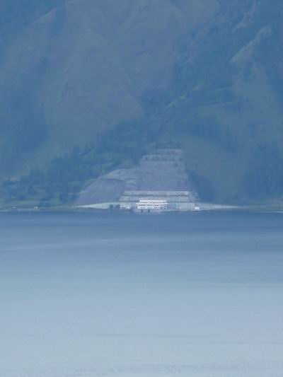 Strom-Erzeugung bei Silalahi. Im Steilabhang sind Turbinenrohre verlegt.