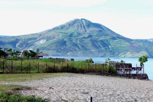 Blick nach Südwesten, direkt auf den Nabelberg Pusuk Buhit im Morgenlicht
