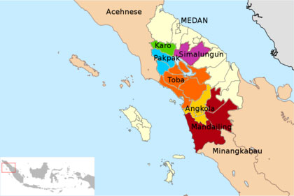 Gebiete der 6 verschiedenen Batak-Völker, zentral liegt der Tobasee