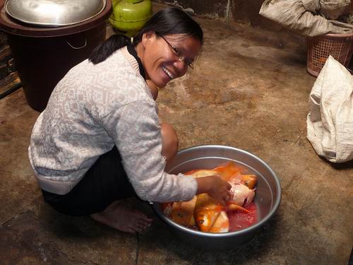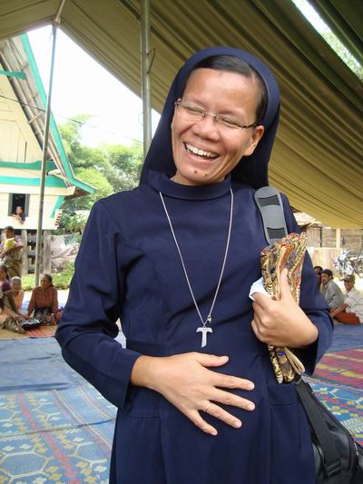 Meine Batak-Schwester, die Nonne Sr.Dominika, kommt aus Medan und hilft die Goldfische zu kochen.