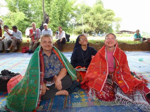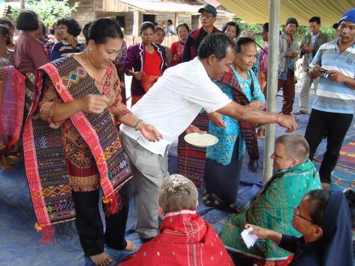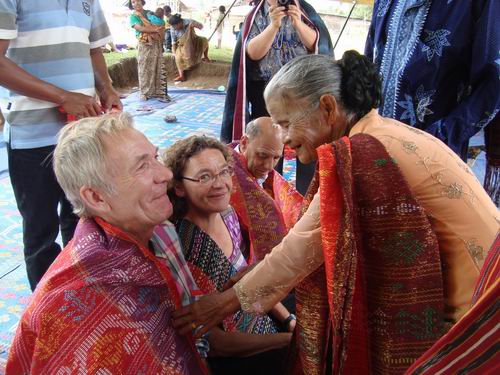 Auch unsere Gäste aus Deutschland und Jakarta werden von Mutter gesegnet und beschenkt.