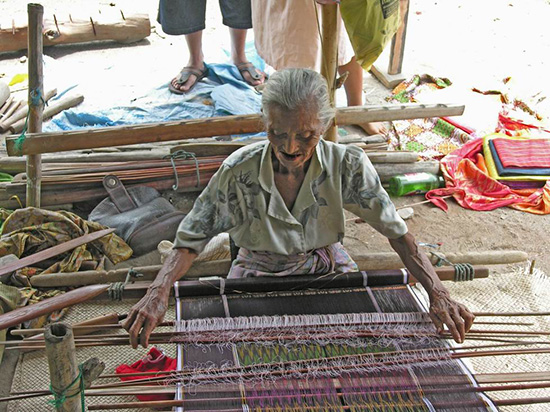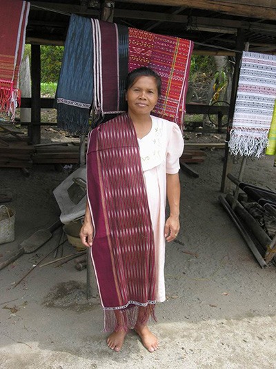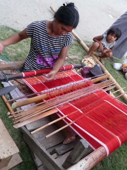 Wir fuhren zuerst nach Huta Raja, zu diesem architektonisch und auch sonst sehr ursprünglichen Dorf. Dort saß unter dem Haus eine 92-jährige Weberin, die die feinsten Ulos-Tücher webte – wir haben 2 traditionelle Tücher ausgesucht, die später Marisi (Ihr Bruder) als best quality bezeichnete und genauestens beschaute. Die daneben stehende junge Enkelin reagierte nicht bei Erwähnung von Christina, Ihrem Namen, erwähnte aber, sie erwarte gerade ihr 6. Kind. Sie war etwas unsicher, was das alles mit uns zu bedeuten hat.