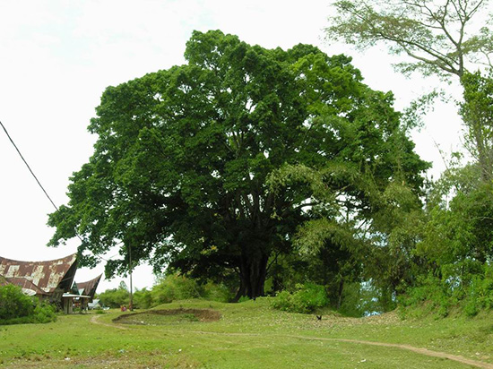 Jetzt wurde die Landschaft grüner, weiter und weniger besiedelt – der heilige Berg Pusuk Buhit schimmerte von, den wir aber aus Zeitgründen leider nicht umrundet haben. Dann sahen wir den Sidihoni See, heute nur noch ein wenig einladender „Tümpel“ und plötzlich standen wir vor Ompungs (Grossmutters) Haus. Das neue, moderne Steinhaus Ihrer Mutter hat uns in dieser Umgebung ziemlich verblüfft. Eigentlich aus baulicher Sicht eine kleine „Sünde“, zum Leben aber bestimmt sehr viel komfortabler. Das Riesenwohnzimmer mit diesen 50-er Jahre Sofa und Sesseln war ein Kontrast zu der traditionellen schönen Matte am Boden. Die Schüssel zum Geschirrwaschen stand gleich neben der Toilette; so wie Sie es vorab vermutet hatten. Das ebenfalls modern nüchterne Gästezimmer wurde von Ompung oder ihrem guten Geist Eda (Ihrer Schwägerin) so nett mit einer bequemen Matratze und mit frischer Bettwäsche extra für uns hergerichtet. Wir hätten viel lieber im weit weniger bequemen Adathaus von Christina übernachtet, doch diesen Wunsch konnten wir selbstverständlich nicht äussern.