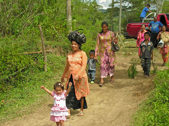 Marisi, dieser sehnige Mann mit dem sehr lieben Lächeln, erwähnte, er könne einfach nicht aufhören mit dem Rauchen, obwohl er das immer wolle. Seine 2. Frau Eda, diese schöne modern wirkende Frau, war völlig im Hintergrund, schmiss offensichtlich den ganzen Haushalt, sehr effizient. Ich habe sie leider wegen der Sprachbarrieren kaum persönlicher ansprechen können, was mir nachträglich leid tut. Pernando übersetzte anfänglich sehr rudimentär. Sein Englisch wurde immer besser – er diskutierte anschliessend mit Marisi und uns und kannte auch abstrakte Begriffe. Pernando schien mir ein sehr interessanter und differenzierter Jugendlicher zu sein, eine Mischung aus introvertierter Verträumtheit und stiller Aufmerksamkeit bei seinen vielen kleinen Handreichungen. Abgesehen davon ist er, wie wir nach dem Kirchgang feststellten, der weitaus hübscheste Jugendliche vom ganzen Dorf. Er lacht so herrlich scheu. Am Samstag Abend war eine Party für die Jugendlichen bei der Kirche. Mit lauter Musik und Motorradgedröhne. Wir mussten ihn mehrmals auffordern auch zu gehen, so höflich war er .Das Mobilphone (wir sagen in der Schweiz „Handy“). war auch sein liebstes Spielzeug. Er hat, glaube ich, auch ein Motorrad. Er ist bald im letzten Schuljahr und bangt etwas auf die staatliche Schlussprüfung hin.