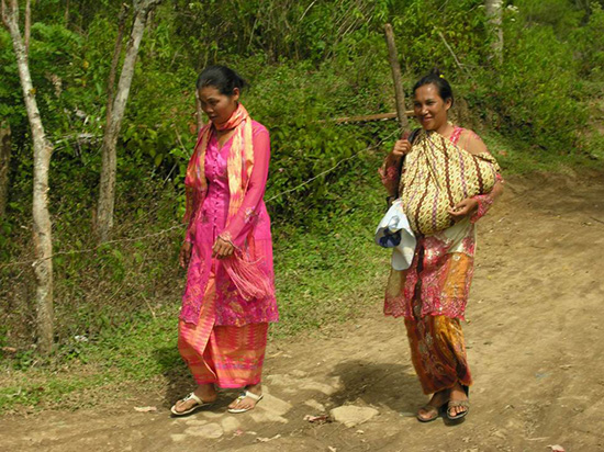 In der Kirche waren aus Platzgründen alle Bänke herausgetragen – die Kirche gestopft voll. Vorne die Kinder, dann die Teenager und rechts die jungen und weniger jungen Frauen, links die Männer. Die Frauen sahen wie Königinnen aus, nicht in traditioneller Kleidung oder Sarong (Wickelrock), sondern in einer Art Abendkleidern, mit schmalen langem Rock und farbigen durchsichtigen Blusen, tollen Haarfrisuren, alles farblich abgestimmt. Ich war schlicht baff. Die Kinder auf und um sie herum garniert, in erwartungsvoller Stimmung, ohne je zu stören oder zu quengeln. Ja, die Indonesier allgemein lieben die Kinder wirklich.