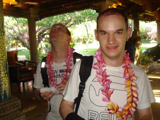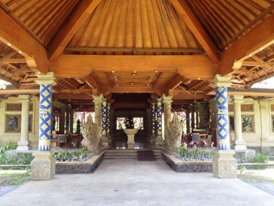 Er hat uns ein kleines Restaurant außerhalb von Denpasar ausgesucht, da unser Stammlokal direkt am Strand wegen einer großen Familienfeier geschlossen hat. Wir werden traditionell balinesisch bekocht und während wir auf das Essen warten können wir unserem Freund unser „Mitbringsel“ aus Europa, ein Smartphone, installieren und ihn in die erste Benutzung einweisen. Die Fahrt nach Pemuteran ganz im Nordwesten der Insel dauert noch einige Stunden, aber es gibt viel zu erzählen. Wir nehmen die Strecke durch die Berge, am Danau Bratan und Danau Bujan entlang über Seririt und kommen spät in der Nacht an unserem Ziel Matahari Beach Resort & Spa an. Wir werden erwartet und sofort mit dem duftenden Blütenkranz geschmückt. Auch die aromatisch getränkten Erfrischungstücher sind eine Wohltat. Bevor wir schlafen nehmen wir noch einen wohlschmeckenden Fruchtdrink auf unserer Terrasse ein – wir sind in einem Paradies angekommen.