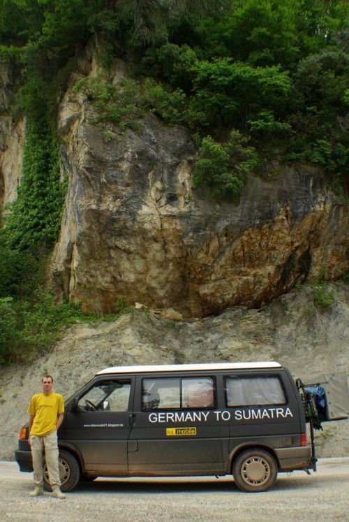Kurz vor Inebolu sahen wir eine Bäckerei und kauften ein Brot. Da wurden wir schon von einem Türken angesprochen und zu einem Cay (Tee) eingeladen. Im Verlauf des Gesprächs stellte sich heraus,daß er 38 Jahre in Deutschland gearbeitet hatte. Er bot uns an, auf seinem Grundstück den Bus abzustellen und bei Ihm im Haus heiß zu duschen. Kurz drauf packte er unseren Bus voll mit Süssigkeiten - für die Kinder - und am nächsten Morgen überraschte er uns mit einem genialen türkischen Frühstück.