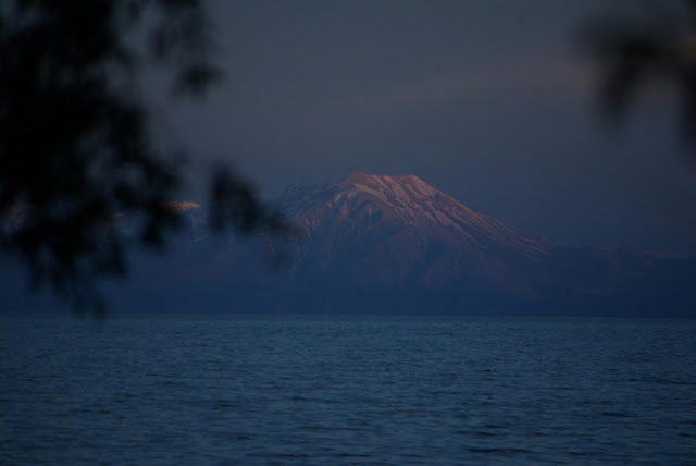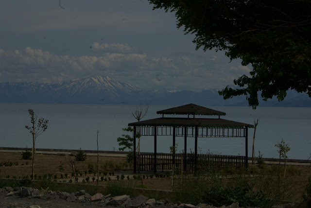 Die geographischen und infrastrukturellen Gegebenheiten ernuechtern uns dann etwas. Der Van-See, der groesste See der Tuerkei ist ca. 7 mal so gross wie der Bodensee, liegt auf 1700m Hoehe und ist dadurch entstanden, dass bei einem Vulkanausbruch sein Abfluss verstopft wurde. Ein natuerlicher Stausee sozusagen. Das Wasser ist stark sodahaltig, sodass bei einem ph-Wert von 9 die Fische nur im Bereich der Zufluesse existieren koennen. Der See ist von einigen der hoechsten Berge der Tuerkei umgeben, die alle schneebedeckt sind.
