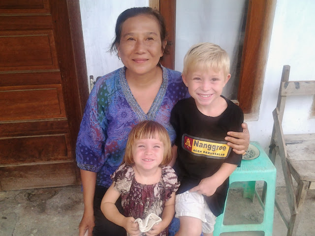 Feni mit Sima und Vasco. Die Kleinen können nun weiter ihr Bahasa Indonesia üben..