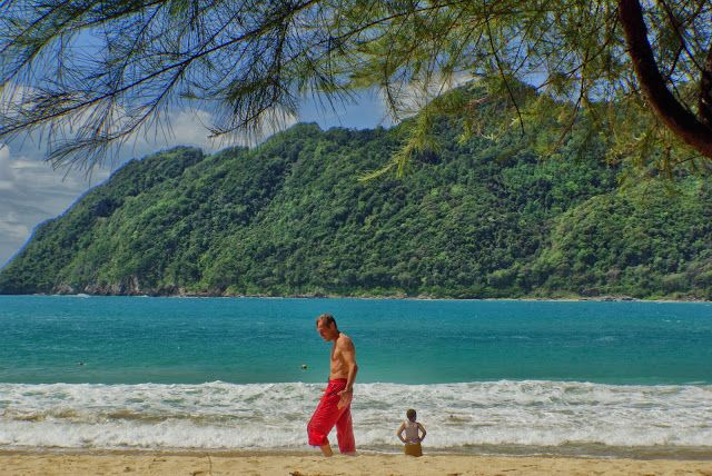 Joel hat schoene Bungalows an die steilen Felsen am Ende des Strands gebaut, es gibt mehrere kleine Seen zum Angeln und wenn das nicht klappt, kann man Pizza aus dem Holzofen stattdessen essen. Kurz: es laesst sich aushalten. Feni will schon am naechsten Tag zurueck nach Banda, sie will Fleisch kaufen und kochen zum Opferfest morgen. Wir versuchen am Abend zum anderen Ende des Strands zu fahren, zur Stelle mit den vielen Fischrestaurants (richtig: das Angeln war wieder nicht erfolgreich!). Aber die Strasse ist mit einer Schranke abgesperrt. Schon geschlossen wegen dem Opferfest, heisst es.