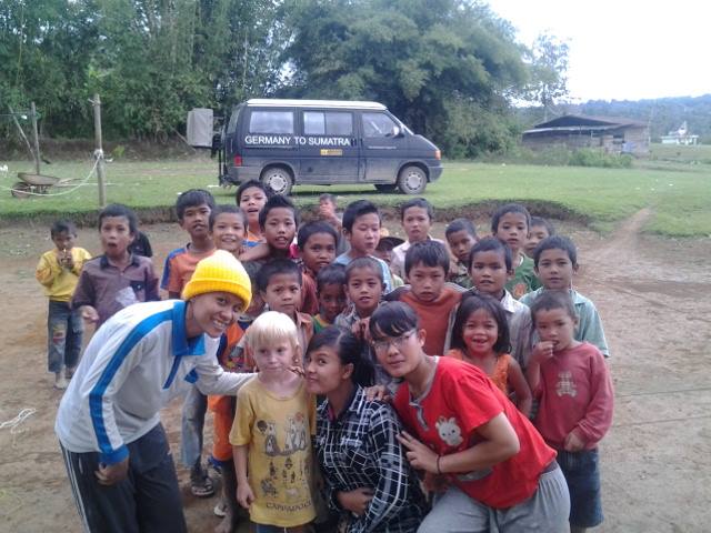 Wie kommen wir nun gerade auf Sidihoni? Unsere Sponsorin Christine Schreiber hat hier mehrmals fuer laengere Zeit in einer Familie gelebt, um eine ethnologische Feldforschung ueber die Toba-Batak durchzufuehren. Sie wurde sogar als eines von 8 Kindern in den Familienklan der Simalango aufgenommen und hat ein altes traditionelles Haus, ein sogenanntes Adat-Haus erbauen lassen, in dem wir wohnen koennen. Die Toba-Batak sind zum Christentum missionniert worden, bewahren aber viele ihrer Traditionen. Wer sich dafuer interessiert, dem sei Christines Buch 'Sidihoni-Perle im Herzen Sumatras' empfohlen, erhaeltlich unter www.sidihoni.com