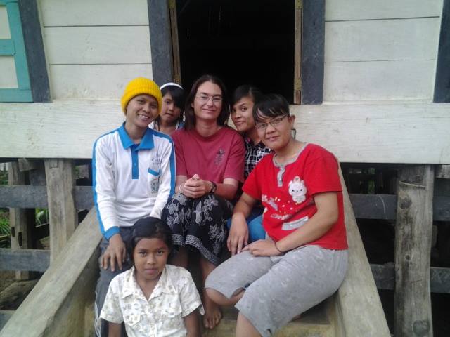 Das Adat-Haus ist sehr geraeumig, im hinteren Teil befindet sich eine Kochstelle mit Holz. Eda mit ihren 2 Toechtern wohnt auch hier, ihr Mann, Christine' s juengster Bruder, ist seit ueber 8 Jahren verschollen.
