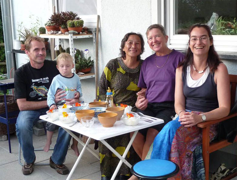 Martinas Kinder lieben Feni, denn sie hatte ja bereits beide unter indonesischem Himmel im Tragetuch geschaukelt. Und so verbrachten alle zusammen ihren Sommerurlaub in Süddeutschland und praktizierten Bahasa. Feni kann kein Wort Englisch. Alleine herfliegen, umsteigen, Imigrasi, Frankfurt Flughafen: all das war für Feni ohne weitere Sprachkenntnisse eine große Herausforderung. Wir lachten, als sie uns davon erzählte. Ganz alleine flog sie, wie mutig.