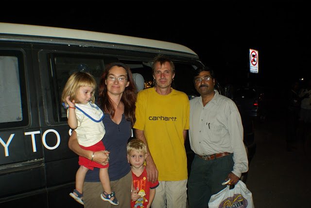 Montag morgen punkt neun Uhr wie verabredet erscheint Mr. Mistry in unserem Hotel in Colaba, er ist sehr aufgeregt, wir muessen sofort los zum Hafen. Er faehrt schon voraus und wir schauen ohne Fruehstueck im Bauch nach einem Taxi. Und da werden wir wieder runtergebremst in unserem Aktionismus, es dauert eine Stunde, ehe mal ein Taxifahrer aufgetrieben ist, der ueberhaupt die Lange Strecke, es sind fast 2 Stunden nach Nheva Sheva fahren will. Dann sind wir fast da, stehen an einer Tankstelle zwischen Reihen wartender LKW und keiner kann uns sagen, wo das Buero von Mistry ist. Der Taxifahrer will nicht warten und uns mit dem gesamten Gepaeck auf die Strasse setzen. Mr. Mistry ist beim Zoll, zum Glueck tauchen nach einer halben Stunde 2 Mitarbeiter von ihm auf und wir deponieren unser Gepaeck in seinem Buero. Wir fahren zu einem 20 km vom Hafen entfernten Containerlager und der Rest des Tages besteht vorwiegend aus warten und Unterschriften sammeln, wobei da auch einige Geldscheine unter den Schribtischen die Besitzer wechseln, um den Prozess zu beschleunigen. Wie gesagt, Mr. Mistry versteht sein Handwerk. Dann ist noch ein Drucker kaputt, das kostet nochmal eine Stunde, und schliesslich faehrt Patrice um halb acht endlich durch die Schranke. Vasco meinte nur: Mama, wieso dauert das so lang, ist der Papa eingeschlafen?