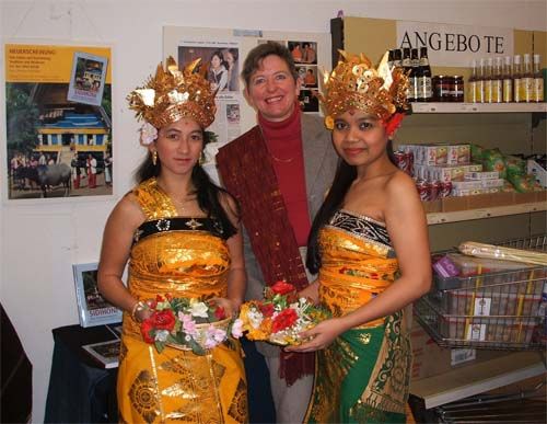 Buchstand mit Ch. Schreiber und den Tänzerinnen von Krida Budaya Sari in Stuttgart