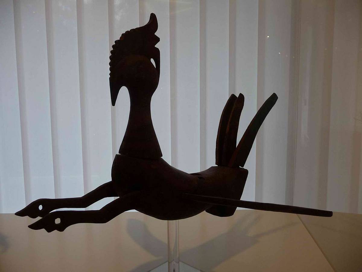 Diese hölzerne Darstellung eines Huhns wird im Haus über einem Nest aufgehängt. Damit soll demonstriert werden, dass hier den Ahnenseelen geopfert wird, die noch weit über den Tod eines Menschen hinaus das Leben der Nachkommen beeinflussen. Um die Ahnenseelen gnädig zu stimmen, müssen Gaben - wie beispielsweise Hühnereier - dargereicht werden.
