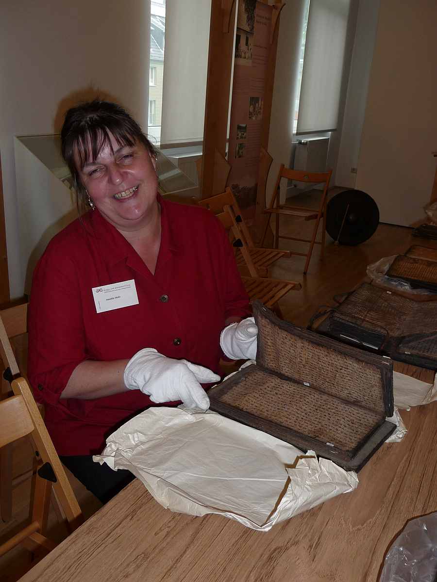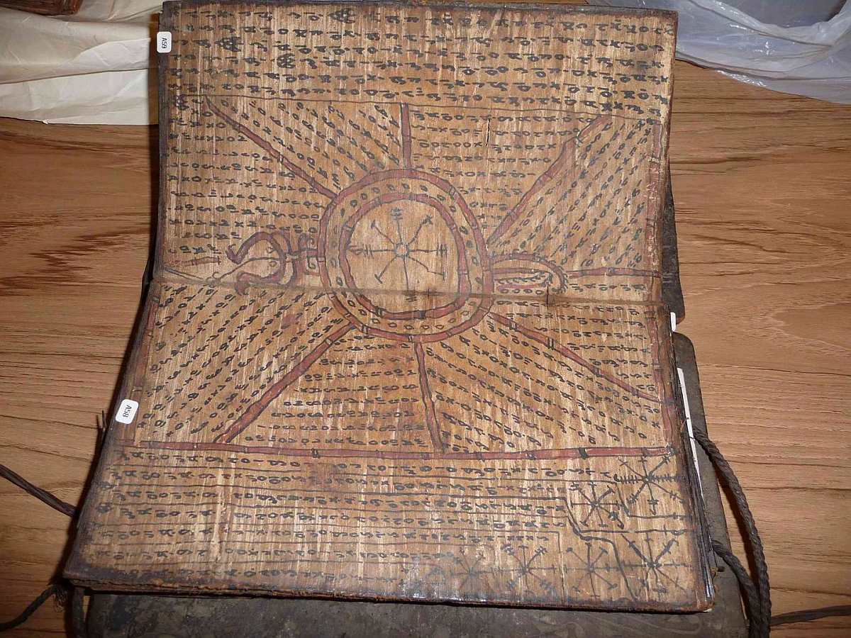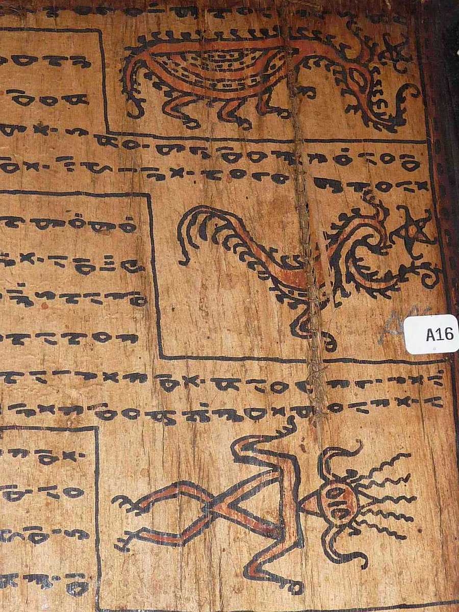 Ganz besondere Schätze liegen zum Schutz im klimatisierten Archivkeller des Museums. Auf Wunsch und mit begründetem Forschungsinteresse zeigt die Museumsbetreuerin, hier Frau Mohr, die Pustaha (Sanskr. pustaka), die Bücher der Batak aus Baumrinde. Sie waren quasi die Notizbücher der Spezialgelehrten der Batak, genannt Datu. Datu erlernten in ihrer exquisiten Lehre bei einem lokalen Meister die Zeichen der alten Batakschrift. Als schrift- und schreibkundige Priester-Elite gaben sie in diesen Büchern ihr magisch-religiöses Wissen unter sich weiter, begonnen von Rezepturen gegen Krankheiten, Kalenderinterpretationen, Beschwörungsriten zur Beeinflussung von Menschen, Geistern, Seelen, Verstorbenen und Ahnen, zum Zwecke der Kriegsführung oder Heilung. Sie waren die Spezialisten zum Verleihen magischer Kräfte an Zeremonial-, Prestige-, Schutz- und Kriegsgeräte.