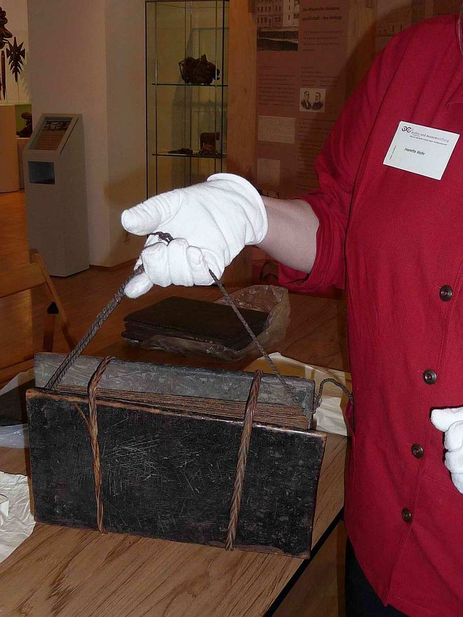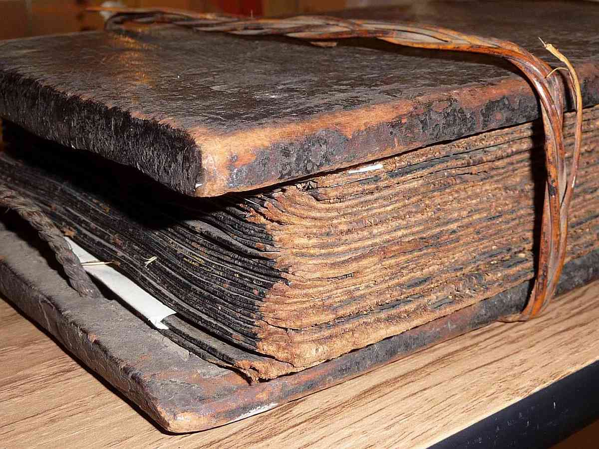 Die Rindenbastbücher, genannt Pustaha oder Buku Lak-Lak (wörtl. Rinde, Bast) dürfen nur mit Handschuhen angefasst werden. Das organische Material ist empfindlich. © Schreiber