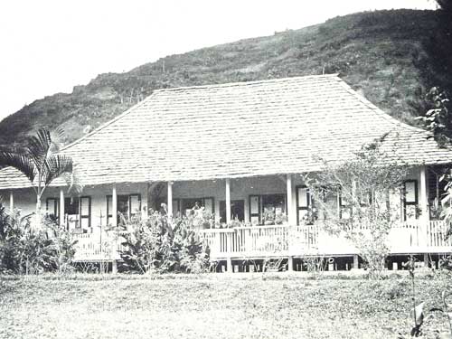„Wir Kinder sahen gerne zu, wie er [der Batakjunge] die Pferde versorgte, die Ställe säuberte, oder wenn er Holz hackte. Die Jungen wohnten in einem nach batakschem Vorbild gebauten Haus, das wie alle Batakhäuser aus einem Raum bestand. Sie hatten auch Ihre gewohnten Reisstrohmatten zum Schlafen. Diesem Raum angeschlossen war noch ein Lagerraum für Vorräte und für Futter für die Tiere, Pferde und Hühner. Bei den Jungen wohnte auch eine Zeitlang der Zauberdoktor Amabutuholing, der immer wieder einmal kam, um meinen Vater auf sein Bitten hin die batakasche Schrift zu lehren und ihn in die animistische Weltanschauung der Batak einzuführen….“ (S.47)